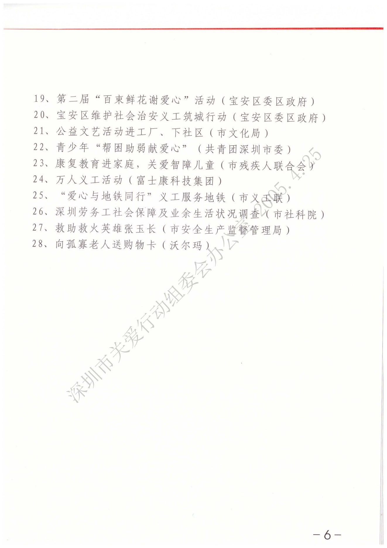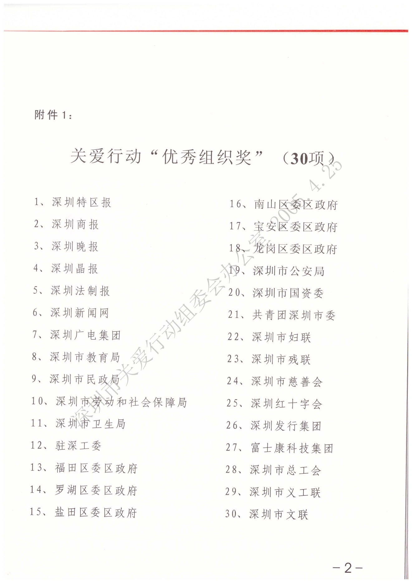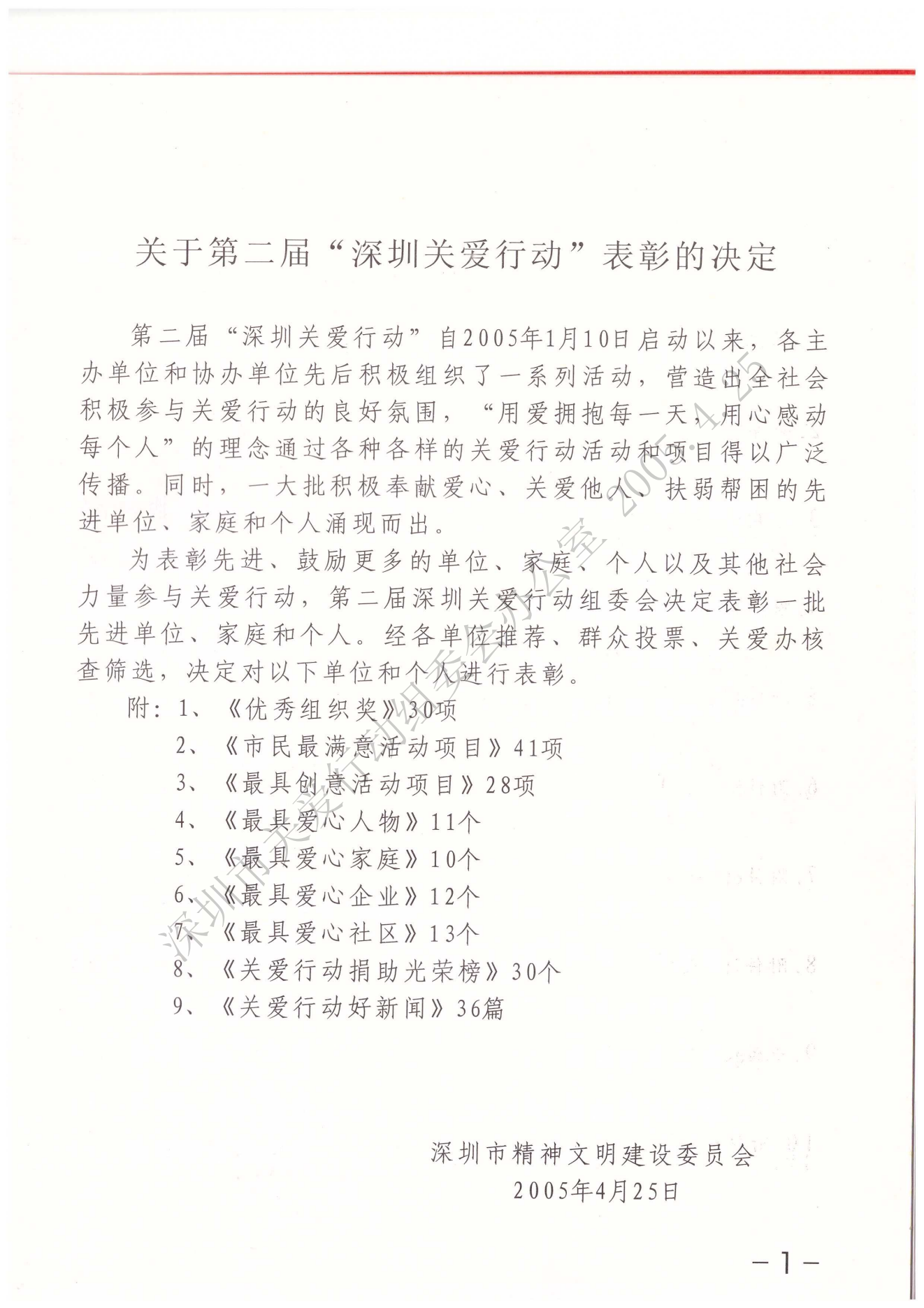 關(guān)于第二屆“深圳關(guān)愛行動(dòng)”表彰的決定