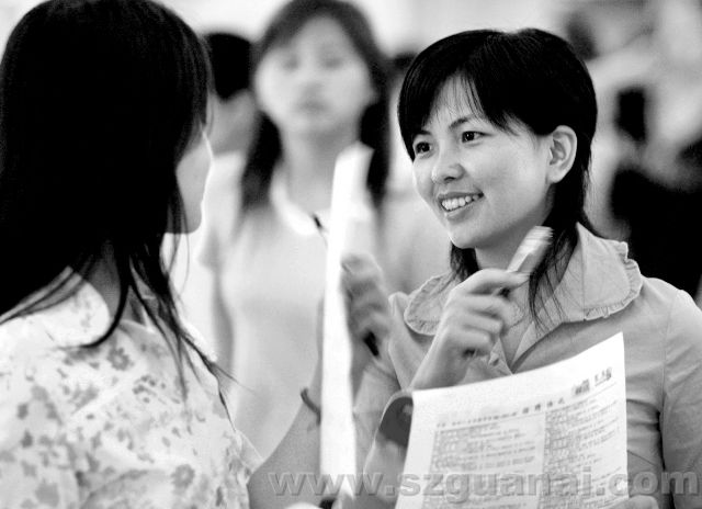 為進一步落實深圳婦女就業和再就業,昨天,由市婦聯、市勞動和社會保障局聯合主辦的“關愛·自立”--深圳女性就業專場招聘會在八卦二路勞動就業大廈舉行。招聘會開發了一批女性具有優勢的第三產業服務、顧問咨詢等類型工作崗位,供前來應聘者選擇。降低就業門檻,提高她們求職的成功率。圖為應聘者在交流經驗。(特區報記者許光明通訊員王益麗攝)