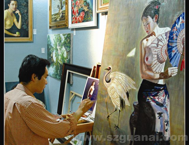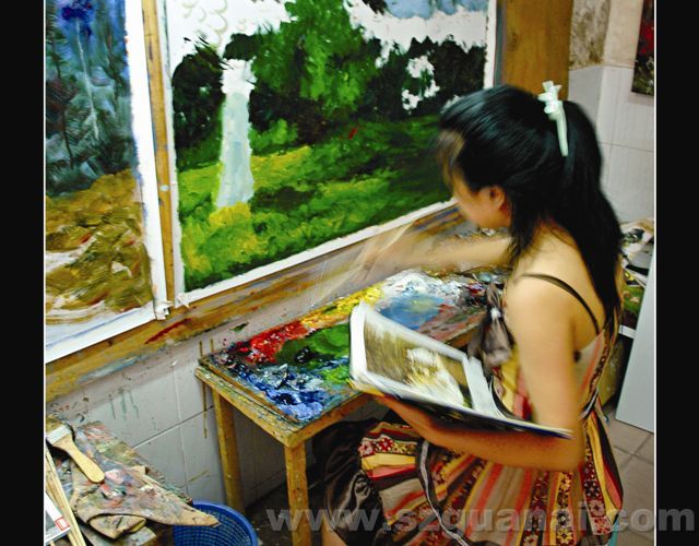 大芬油畫村的畫師在精心作畫組照(黃佩儀攝)