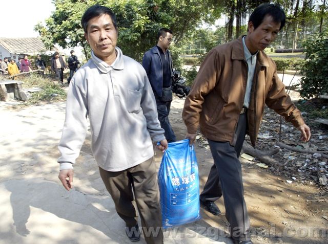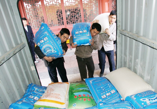 慰問團將大米和食用油等生活用品送到吳茂輝家中。