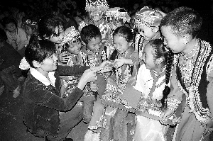 支教老師和孩子們一起過節(jié)日。