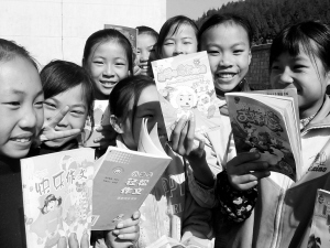 右圖:收到深圳孩子的捐書,貴州山區的孩子們十分開心。本報記者 彭晨攝