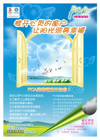 深圳公司PCA(員工心理資本增值)項(xiàng)目已于2008年8月6日正式啟動。為了解員工心理資本現(xiàn)狀和對PCA項(xiàng)目的期望與喜好,以便進(jìn)一步結(jié)合員工心理特征和對項(xiàng)目的需求,更好的為員工提供項(xiàng)目服務(wù),PCA問卷調(diào)查已經(jīng)開始。