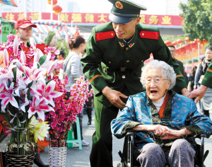 在深圳市第28屆迎春花市上,市民們又見到廣東邊防七支隊官兵熟悉的身影。20多年來,該支隊已先后派出13萬余人次的警力參加迎春花市的執勤工作,官兵主動放棄節假日休息,充當“護花使者”。本報記者薛云麾 通訊員 陳培高 廖 鍵 攝