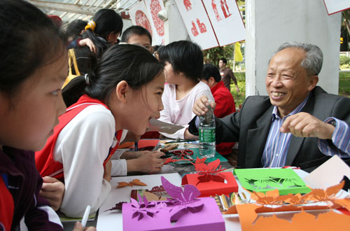 兩個月前,屈阿姨因心臟問題住進了醫院,這才出院一個月,屈阿姨就前來參加“鄰里節”活動,之前大家伙都勸她在家好好休息,可她卻說:“學剪紙對和諧鄰里關系很有幫助,我一定要講講我的感受。”