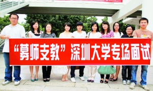 ???? 本網訊? “募師支教”再度牽手本土大學。7月15日上午,第七批深圳“募師支教”行動在深圳大學舉辦專場招募會,來自深圳大學、深圳職業技術學院等院校的應屆畢業大學生參加面試。經過綜合考評選拔,10名品學兼優的大學生最后脫穎而出,成為新一批支教志愿者。此前,深圳“募師支教”主辦方已在深圳職業技術學院舉行了首場招募會,選拔了22名大學生志愿者。至此,共有32名來自深圳大學、深圳職業技術學院的應屆大學畢業生加入到“募師支教”行列。