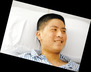 ?。保稓q,陽光燦爛、無憂無慮的年華。然而,英俊少年馮石暉卻做出了一個撼人心魄的決定:身后捐獻包括心肝肺腎脾及眼角膜、胰腺、皮膚、骨頭在內(nèi)的所有身體器官,救助有需要的病人!昨天,在深圳市第二人民醫(yī)院住院部九樓血液科病房,當他在深圳紅十字會器官捐獻志愿書上鄭重簽名的時候,在場的每一個人都被他感動得熱淚盈眶,而他卻用那張雖然飽受病痛折磨但依然英俊的笑臉安慰大家:“如果我醫(yī)治無效走了,還可以用這些有用的器官救助其他的病人,這是一件多么有意義的事??!”