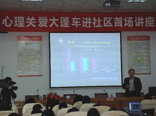 ??? 如何學會給自己和親人朋友減壓,如何學會享受快樂人生?3月1日下午3時,開進龍崗龍城街道尚景社區的“心理關愛大篷車”,為這里的150多位社區居民帶來了答案。深圳市心理學領域學科帶頭人、市精神衛生中心教授、市康寧醫院院長劉鐵榜的《關注心理減壓,共享快樂人生》的專題講座,贏得了現場觀眾的熱烈掌聲。這是第六屆深圳關愛行動·心理關愛系列活動啟動后,“心理關愛大篷車”進社區的首場講座。