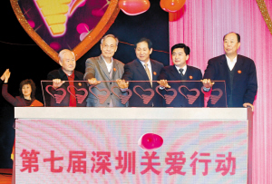 劉玉浦、王榮、李灝、厲有為、李海東一起觸摸啟動屏拉開了第七屆深圳關愛行動的大幕。深圳特區報記者 岑志利 許業周 攝