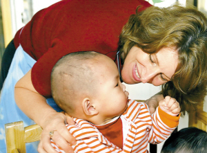 不久前的一個暖和下午,來自美國的邰敏(音譯)女士和她的18歲女兒蕾絲(音譯),在深圳市社會福利中心201室里,和生活在這里的孤兒、殘疾兒童一道玩耍,還熱心地教他們畫畫,忙碌著給他們喂飯、喂奶,就像照顧自己的孩子一樣……