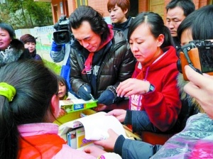 李詠率央視《詠樂匯》欄目攝制組專程來到孫影支教的這所貴州山區(qū)學(xué)校,現(xiàn)場拍攝孫影的支教生活,并開展愛心捐贈活動。在簡短的活動儀式上,央視著名主持人李詠將一塊印有“CCTV詠樂匯捐建”的紅十字書庫牌匾,交至孫影手上,還將自費(fèi)買給該校125名學(xué)生的嶄新書包和帽子,挨個(gè)送到孩子們手中。