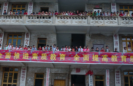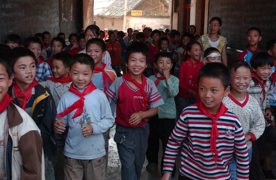 貴州大方縣大水鄉(xiāng)鞍山小學(xué)學(xué)生迎接第二批深圳“募師支教”志愿者