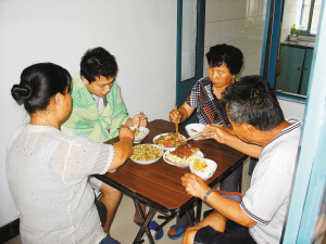 在孟家舊式櫥柜里,記者看見還有吃剩的半條魚,兩碟剩肉。蒸上十幾個餃子,熱熱剩菜,孟女士給程峰送進房:程峰仰臥在床,眼睛紅腫不能見,腹部隆起,孟女士一邊喂食,一邊暗自流淚。