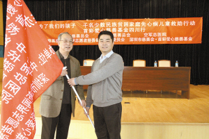2月15日下午14:30,“為了我們的孩子——千名少數(shù)民族貧困家庭先心病兒童救助行動”首彩愛心慈善基金四川行活動在空軍總醫(yī)院舉行了簡短而隆重的啟動儀式暨新聞發(fā)布會。中華慈善總會張道誠副會長、空軍總醫(yī)院劉朝中副院長、中華慈善總會新聞慈善促進會盛春嵐主任、深圳市慈善會·首彩愛心慈善基金陸華秘書長、北京首彩飛霆葡萄酒有限公司郭勇總經(jīng)理以及京華時報、中國廣播電視臺等媒體的記者出席了啟動儀式。伴隨著交旗儀式莊嚴的音樂,首彩葡萄酒北京分公司郭勇總經(jīng)理從中華慈善總會張道誠副會長手中接過此次救助行動的旗幟,這也標(biāo)志著首彩愛心慈善基金“心蓮心”先心病兒童救助項目四川涼山救助行動正式拉開序幕。
