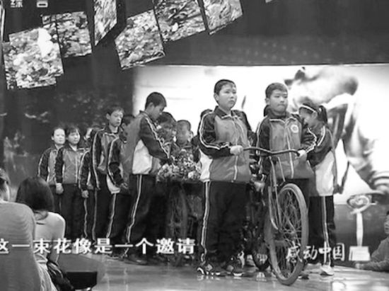 在老人去世數(shù)年之后,這位被譽為“當代武訓(xùn)”、“馱在車轱轆上的豐碑”的全國支教模范成為“感動中國”節(jié)目“特別致敬”環(huán)節(jié)里的致敬對象。來自老人家鄉(xiāng)——— 滄縣白賈村白方禮小學的30名學生將老人的那輛“支教三輪”推上舞臺。活動現(xiàn)場。