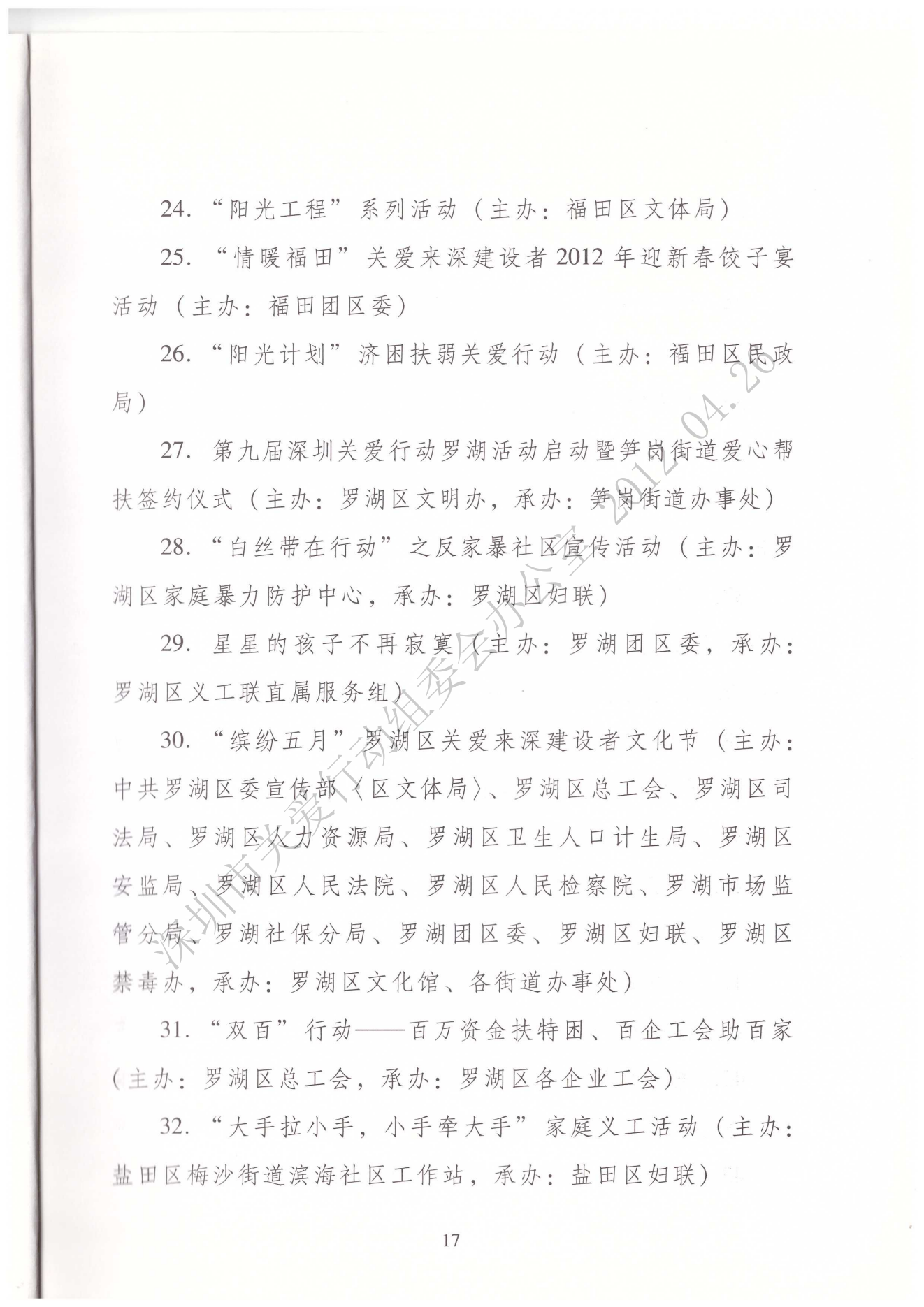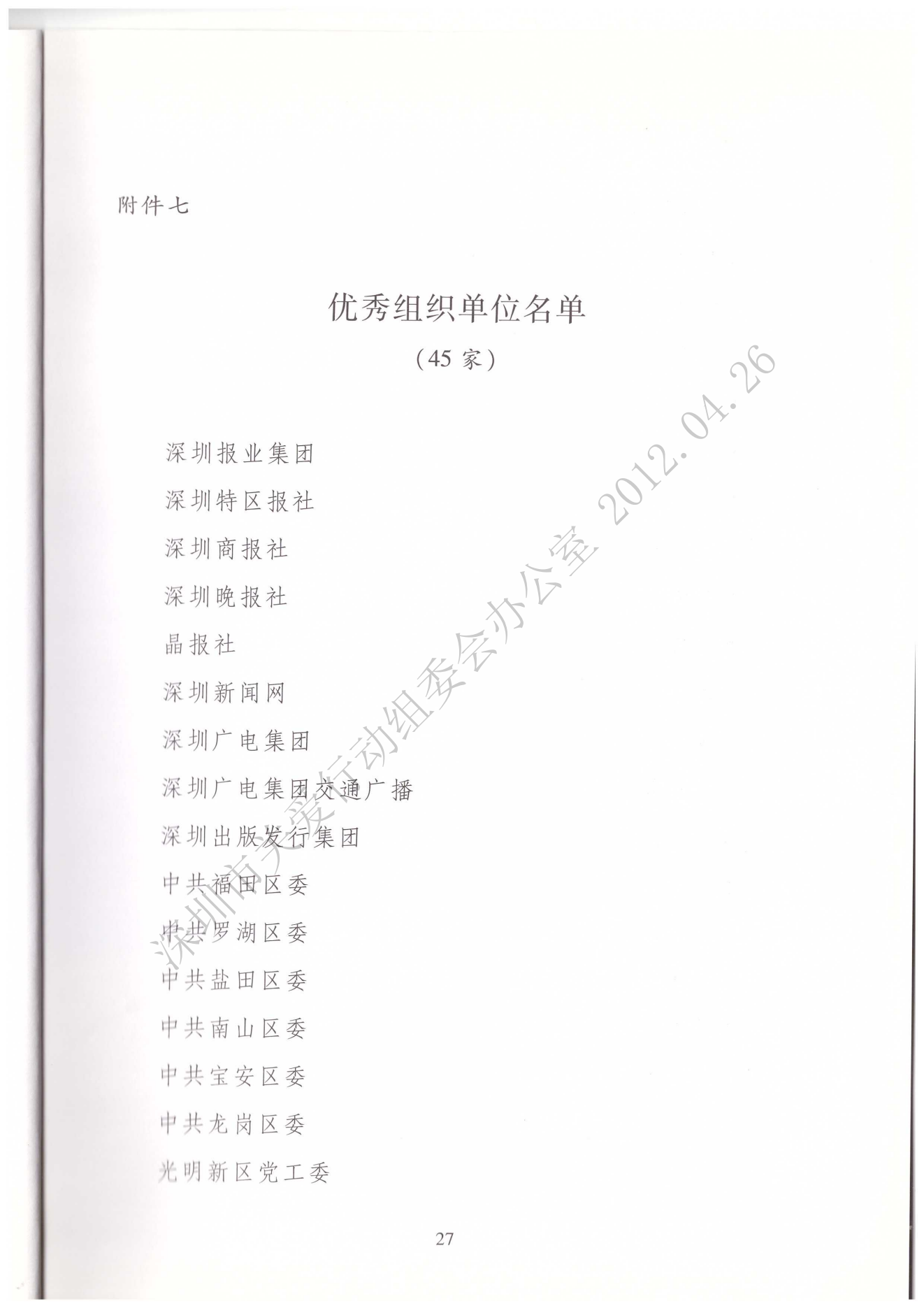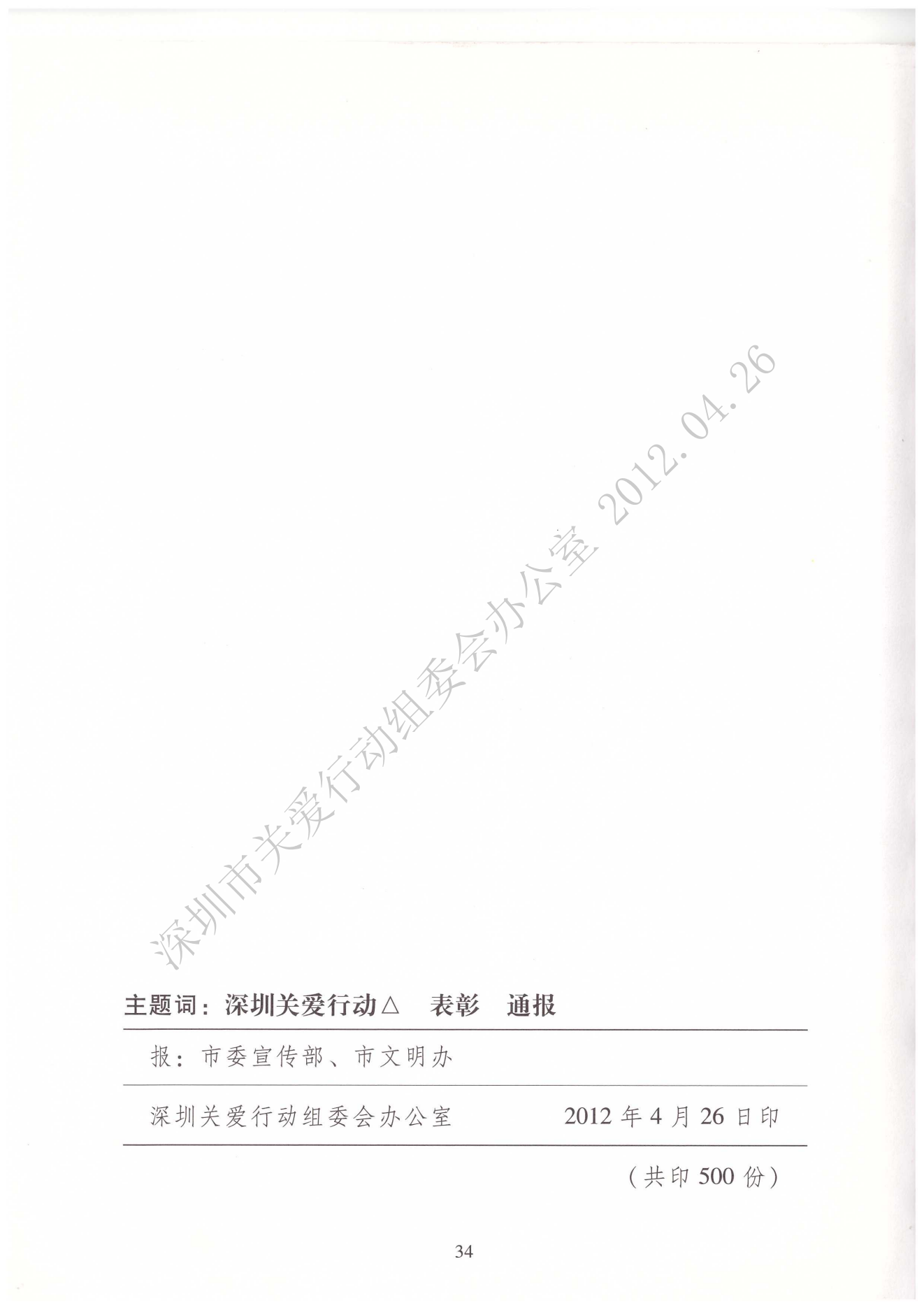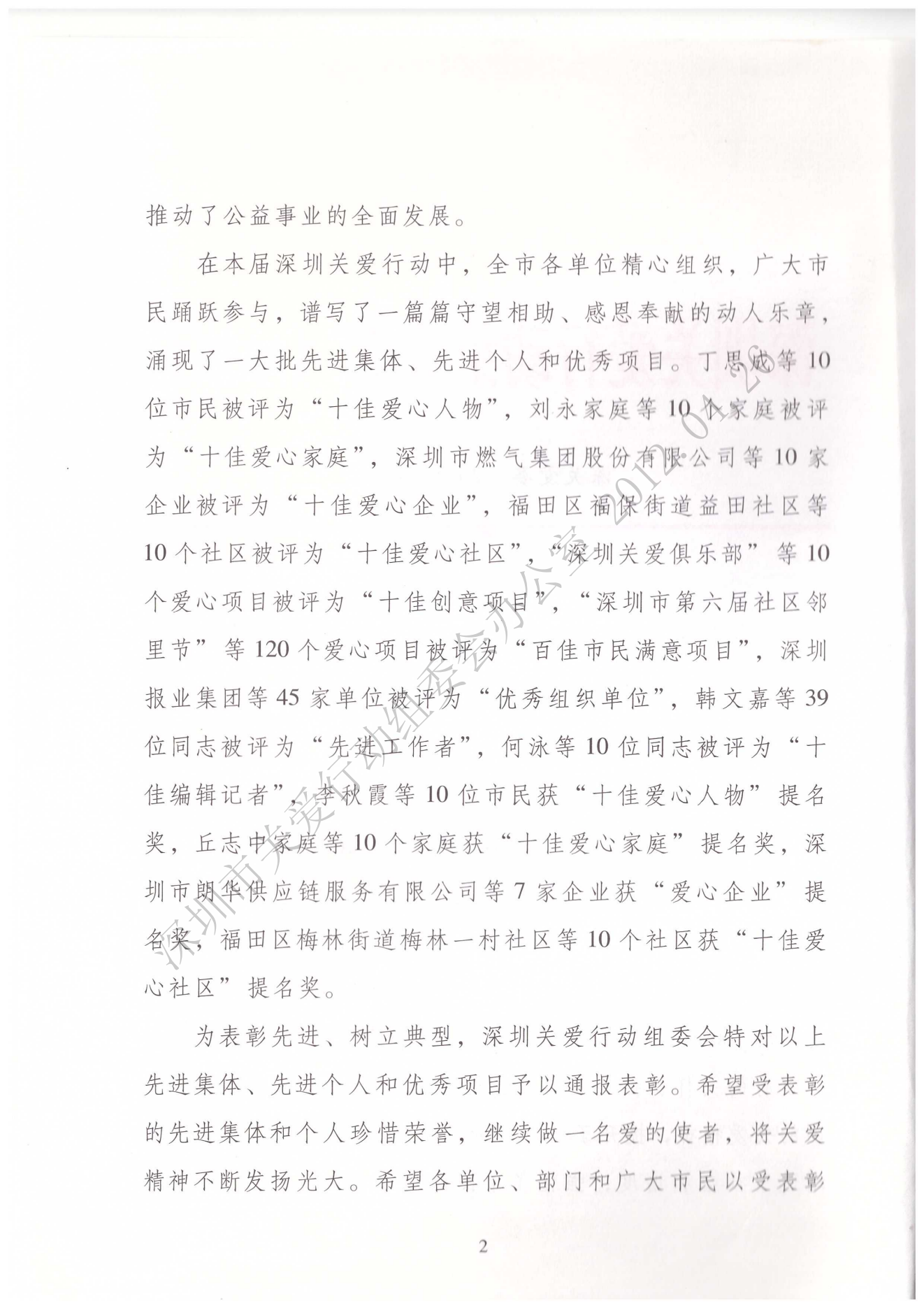 關于表彰第九屆深圳關愛行動先進集體、先進個人和優秀項目的通報