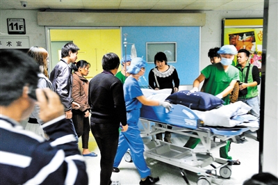 下午6時25分,在3名醫護人員的護送下,鄧杰終于從手術室推了出來。鄧杰的爸爸媽媽、爺爺奶奶一直將他送到了一樓的重癥監護室。