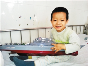 近幾日,小相前靠輸血小板維持生命。熬過了今天,父母就盼望隔天還能見到他活蹦亂跳?!翱粗⒆幽苷f能笑,心情就好多了?!蹦赣H程麗說。病床上,小相前將模型船翻來轉去,“這個船,可以游到水里了。”小相前跟媽媽提出要求。余海昌夫婦欣慰一笑?!皬乃〉浆F在,我從來沒有感覺到這么幸福?!背帖惛屑ふf,“有這么多的人關心我的孩子,我有信心陪孩子走到最后。”(見習記者 李瑤娜)