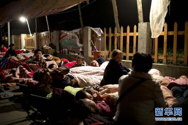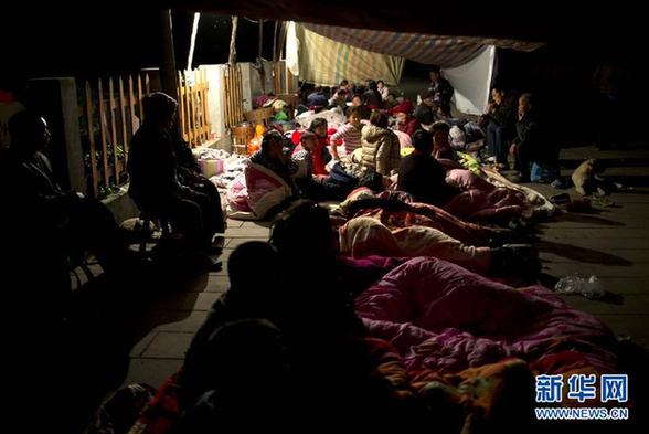 4月20日,蘆山縣寶盛鄉玉溪村村民在臨時帳篷中過夜。當日,四川雅安蘆山縣發生7.0級地震。其中蘆山縣的龍門鄉、寶盛鄉、太平鎮三地受災最為嚴重。新華社記者 費茂華 攝