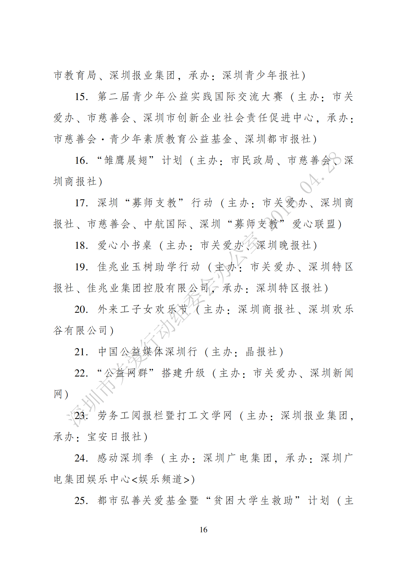 關于表彰第十屆深圳關愛行動先進集體、先進個人和優秀項目的通報
