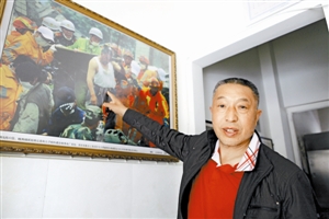 ????楊云青已經記不清有多少媒體記者來采訪過他了。在他開的“震中飯店”門外亭子、門口和店內墻壁上,貼滿了自己在“5·12”時救人場面、與部隊將軍合影的照片,每張都有十幾寸大,是各地媒體送給他留作紀念的。“還有不少與黨和國家領導人的合照咧,但有規定不能亂貼。”