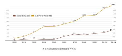 ????數(shù)據(jù)不完全統(tǒng)計(jì),10年來,深圳關(guān)愛 主要承辦、協(xié)辦、支持單位共組織開展活動——1.8萬余項(xiàng)
