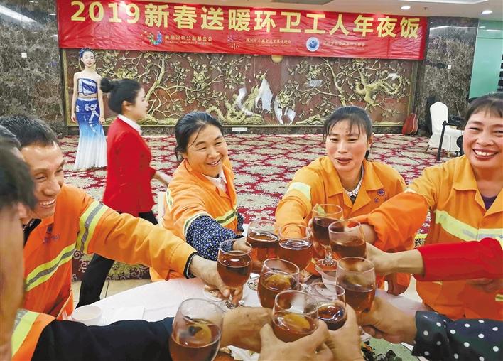 為了讓他們過(guò)一個(gè)暖心的春節(jié),深圳市城市管理和綜合執(zhí)法局聯(lián)合美麗深圳公益基金會(huì)、深圳市小微企業(yè)發(fā)展促進(jìn)會(huì)、深圳市飲食服務(wù)行業(yè)協(xié)會(huì)在全市開(kāi)展“2019新春送暖環(huán)衛(wèi)工人年夜飯”活動(dòng)。62家愛(ài)心企業(yè)、愛(ài)心機(jī)構(gòu)特地準(zhǔn)備了一桌桌暖心的“年夜飯”,邀請(qǐng)近1500名環(huán)衛(wèi)工人提前吃上熱騰騰的團(tuán)圓飯。