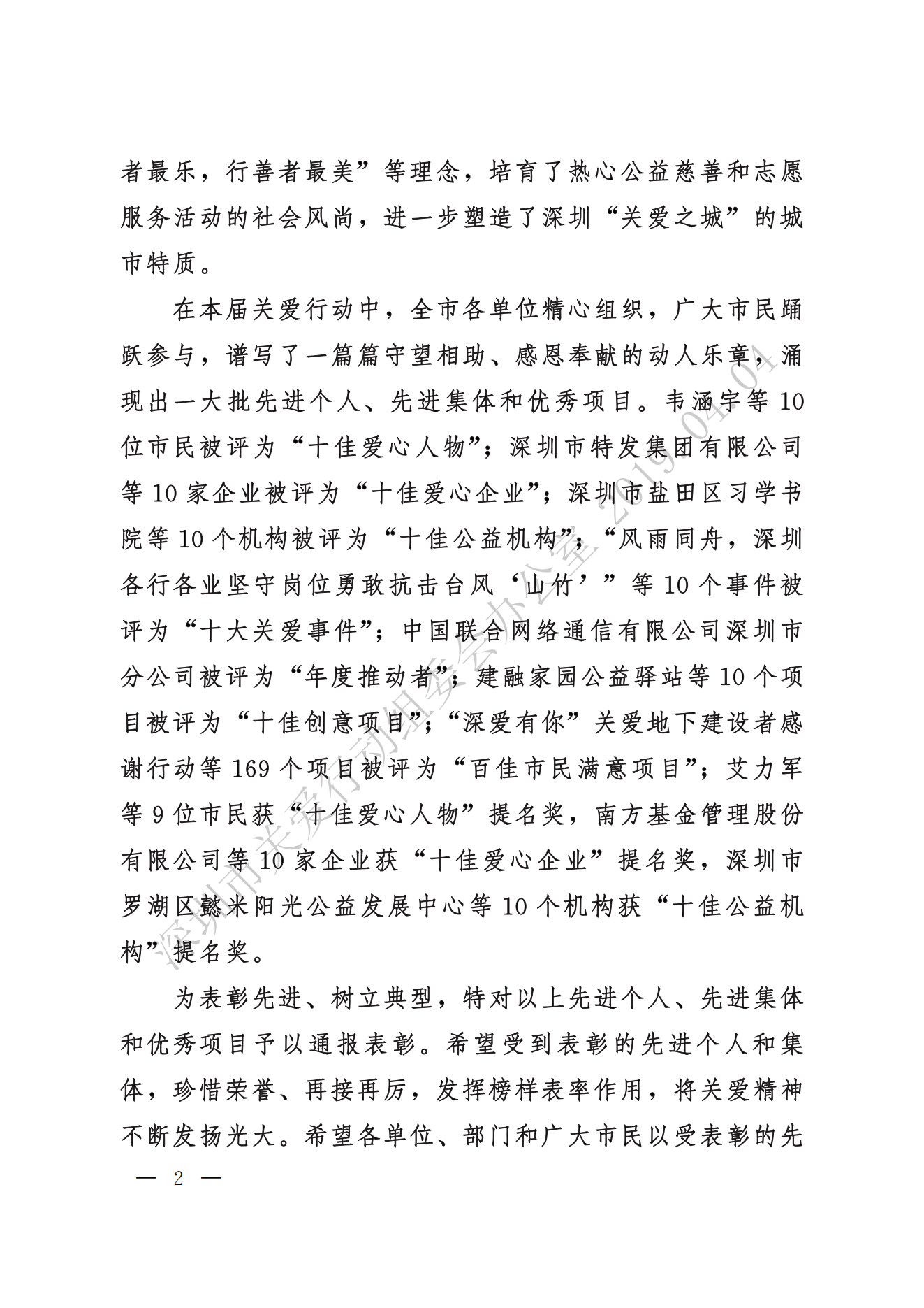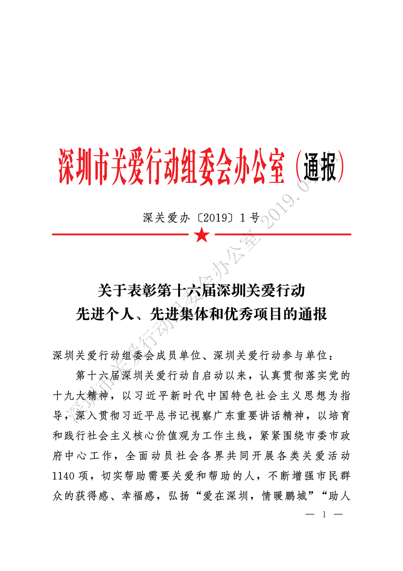 關(guān)于表彰第十六屆深圳關(guān)愛行動(dòng)先進(jìn)個(gè)人、先進(jìn)集體和優(yōu)秀項(xiàng)目的通報(bào)