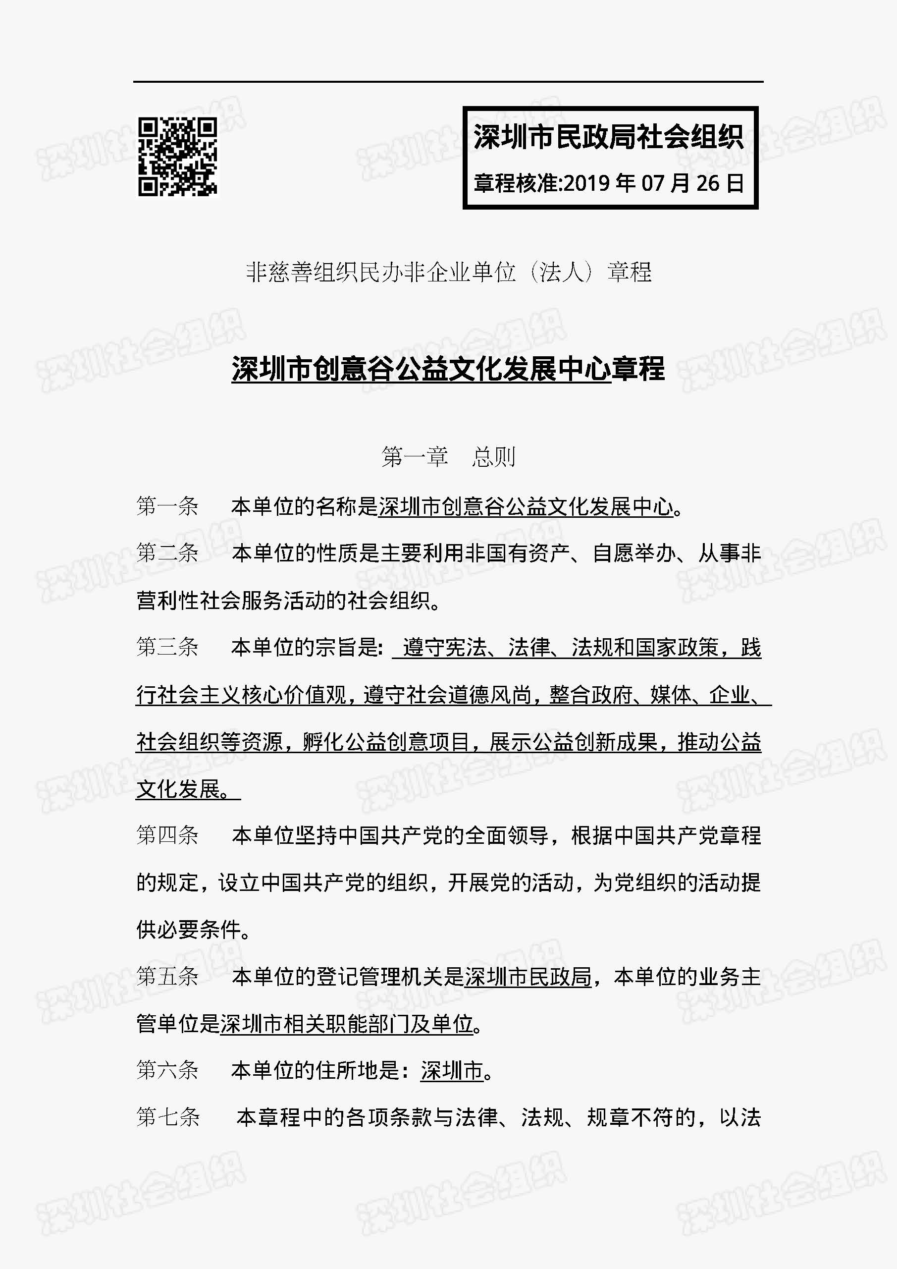 深圳市創意谷公益文化發展中心2019年年度工作報告