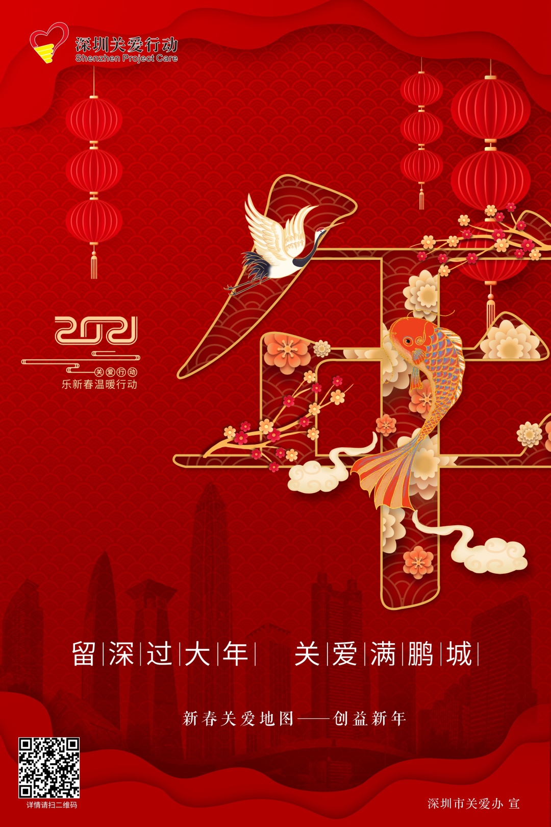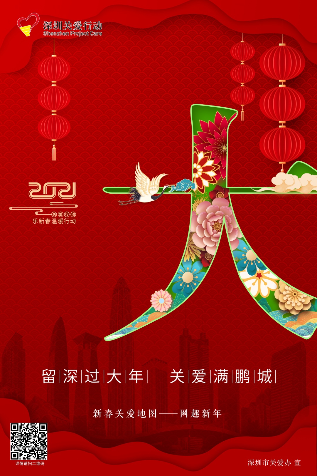 為豐富留深過年市民新春文化生活,讓廣大市民在深圳度過一個溫暖、祥和、豐富、有意義的新春佳節,第十八屆深圳關愛行動“樂新春”溫暖行動在全市各區閃亮推出。“溫暖新年”“健康新年”“藝術新年”“網趣新年”“創益新年”五大主題板塊首期將開展近百項關愛活動,讓留深的你歡樂過大年。