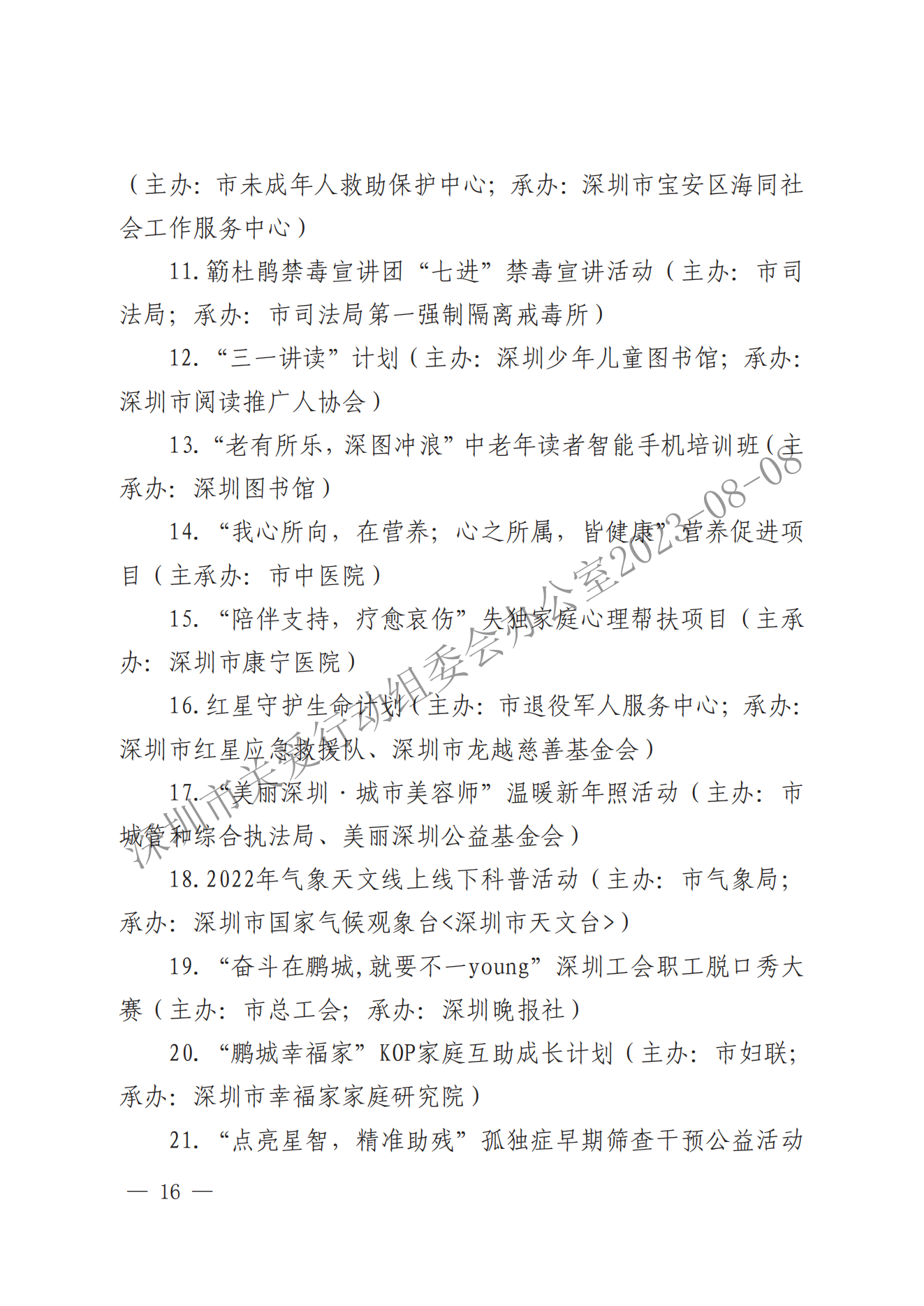 關于表彰第二十屆深圳關愛行動先進個人、先進集體和優秀項目的通報