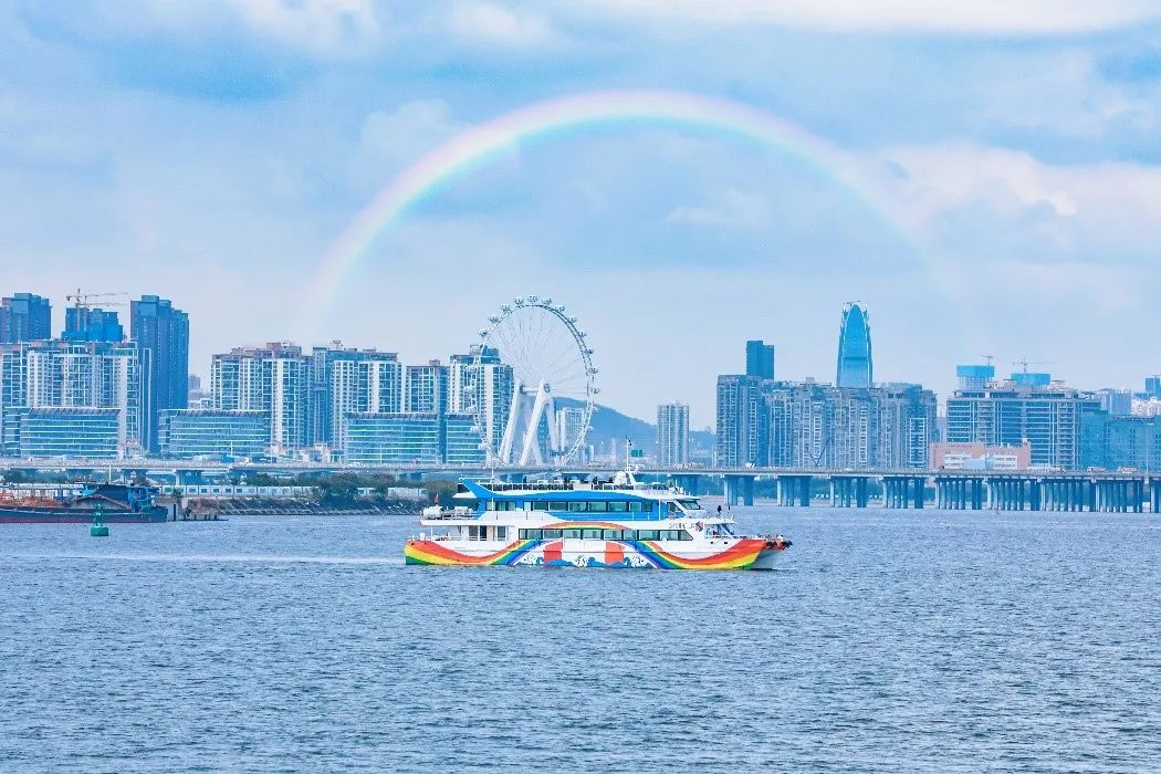 此次活動中,孩子們乘坐象征著希望與美好的 “海上彩虹號”,是寶安區(qū)首艘觀光游輪,由深圳航運集團與深圳機場碼頭聯(lián)合運營,目前已開通前海灣和深中通道兩條航線,本次航程為深中通道觀光航線,途徑東西人工島,海上穿越深中大橋。