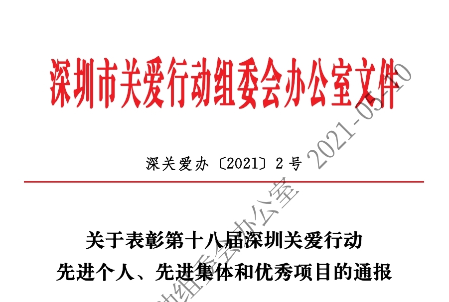 關于表彰第十八屆深圳關愛行動先進個人、先進集體和優秀項目的通報