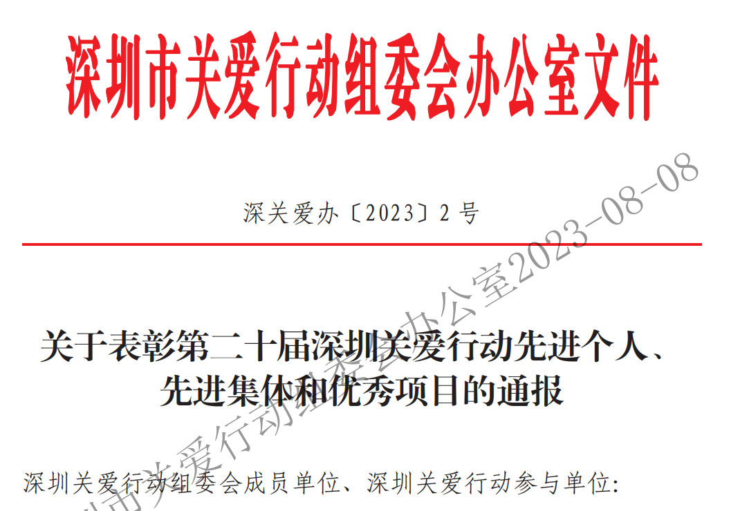 關于表彰第二十屆深圳關愛行動先進個人、先進集體和優秀項目的通報